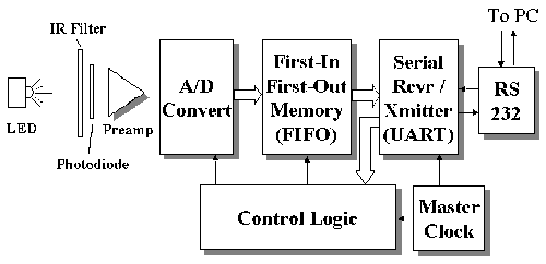 While I was watching TV one day, an idea suddenly hit me: Why not use infrared light as remotes do? Infrared light is easy to generate with an infrared LED and also easy to measure with a photo diode. These considerations made infrared light "my waves".